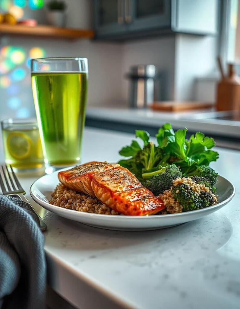 • Grilled salmon with a side of quinoa and steamed broccoli.